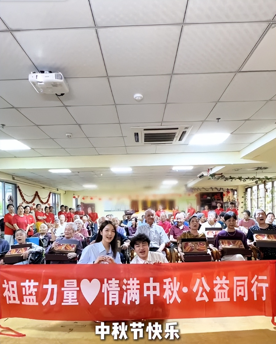 最后,他们给老人们纷纷送上月饼,并拍了一组大合照,画面十分温馨。