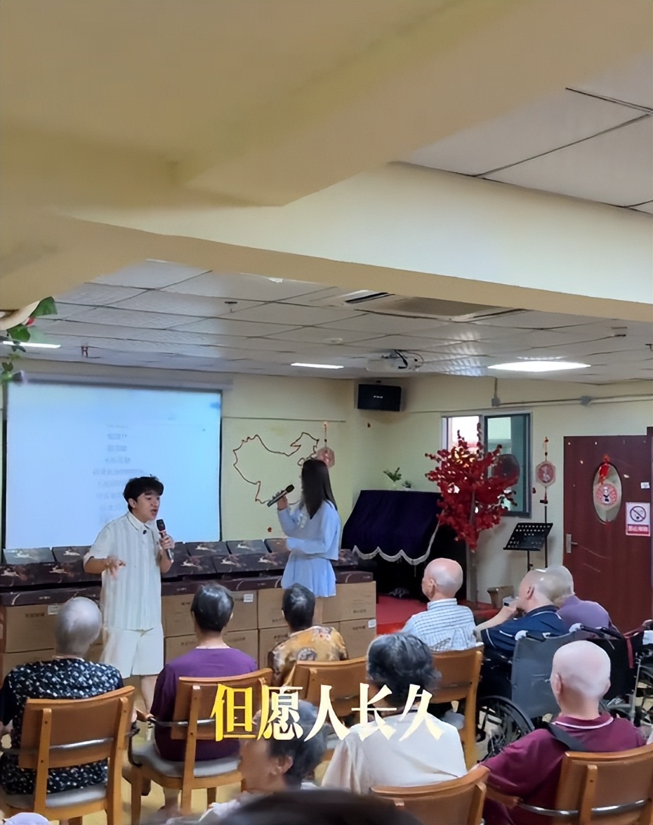 老人家看到他们很开心,王先生夫妇还给大家表演了节目,现场非常热闹。